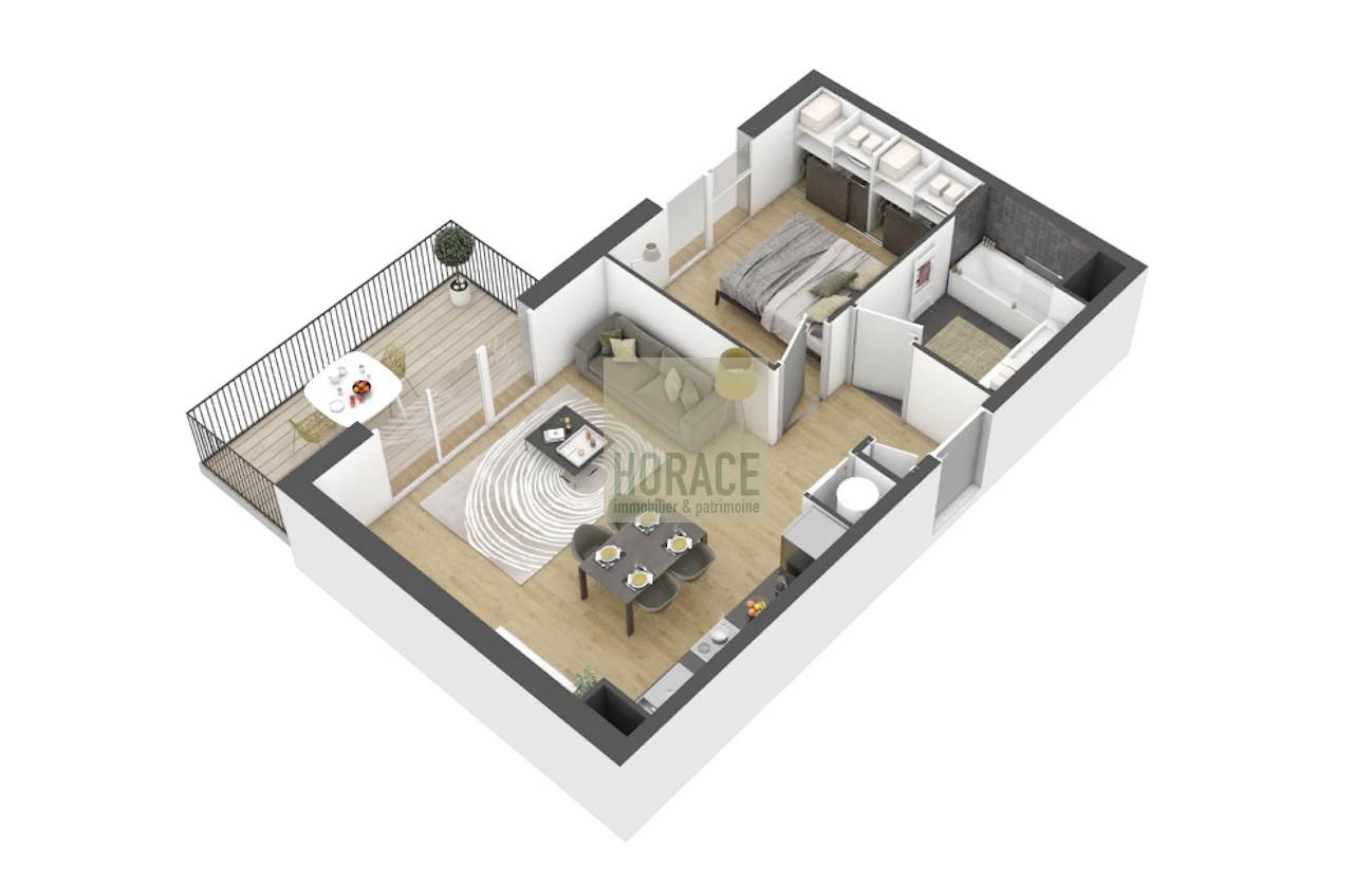 Appartement de type T2, d’une superficie de 46,73 m² avec terrasse de 8,58 m² et d’une place de stationnement en sous-sol. L’appartement est situé dans un ensemble immobilier de trois étages.